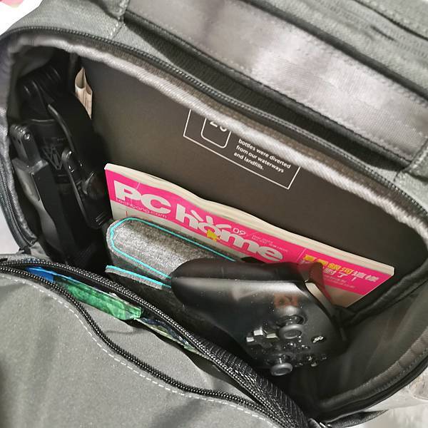 筆者的需求是常常去朋友家帶台Switch跟手把,林林總總加起來一堆東西也不少,全部塞進去後還有不少的空間可用,另外有加厚泡棉也不怕震動,加上背帶及背部都有 減壓及透氣網狀設計,久背移動不累也不易悶熱。