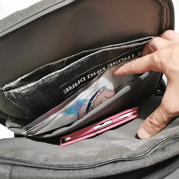 ▼ 最後面的夾層,沒有筆電就放了平板,順便連資料夾及購物袋都放進去。