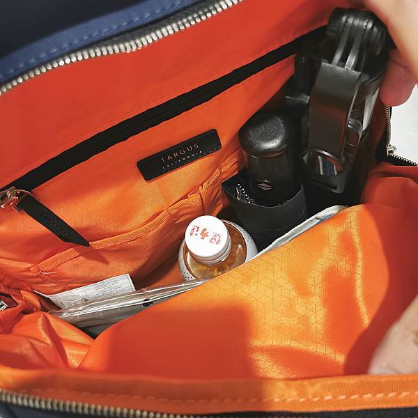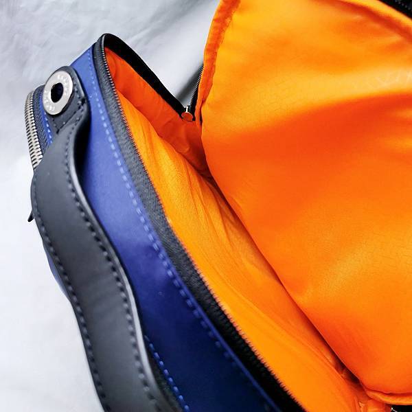 此次開箱的 Targus 15吋 簡約時尚雙肩包(海軍藍),外觀確實會令人眼睛一亮,拉開拉鍊內部全部搭配橘色,真的是閃到爆,是款不論男女都適合的雙肩包。