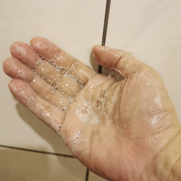 ▼ 倫士度 頭皮去味洗髮精 也是透明狀,因為是短髮不用很多,也是很容易起泡。