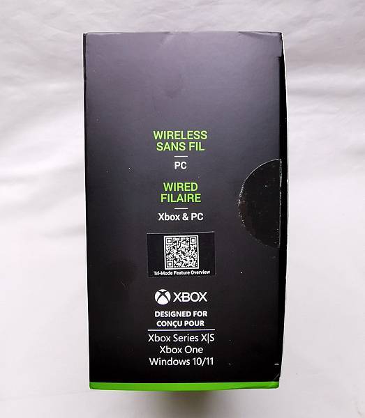 ▼ 外盒側面 印著連線限制 - PC端適用 有線及無線 連接,XBOX主機 僅適用 有線連接。