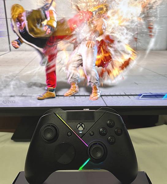 ▼《快打旋風6》格鬥遊戲不僅是考驗反應速度,使用招式的指令也要求準確,對戰時當然不能有一點點的延遲;ROG Raikiri Pro PC 控制器 四個後側按鍵,可以設定一鍵 投技、鬥氣迸放、鬥氣防禦、鬥氣衝鋒,不僅更不容易按錯,連續技使用起來也更方便。