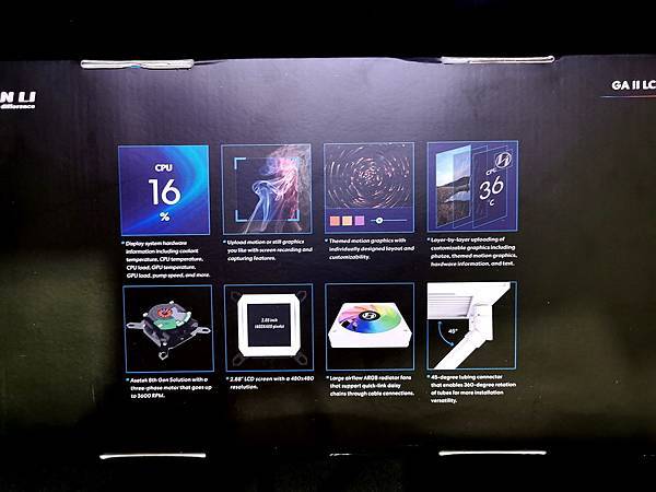聯力科技 電腦組裝市場 散熱方面 可說是大放異彩,各種創新及種類繁多的 機殼、風扇、散熱器…等等,這次要開箱的 一體式水冷 LIAN LI GALAHAD II LCD 360 ARGB,採用 Asetek 第八代水冷泵,有更強的散熱效能及更安靜的運行環境;最特別的是 2.88吋的IPS可控螢幕,解析度為480×480;透過 L-Connect 3 除了可以設定 散熱風扇及水冷頭外殼 ARGB,更是可以自定義 水冷頭螢幕的顯示效果,可以自行上傳影片或照片,讓水冷頭不再是水冷頭;原廠提供6年保固,使用者可以大大的安心。