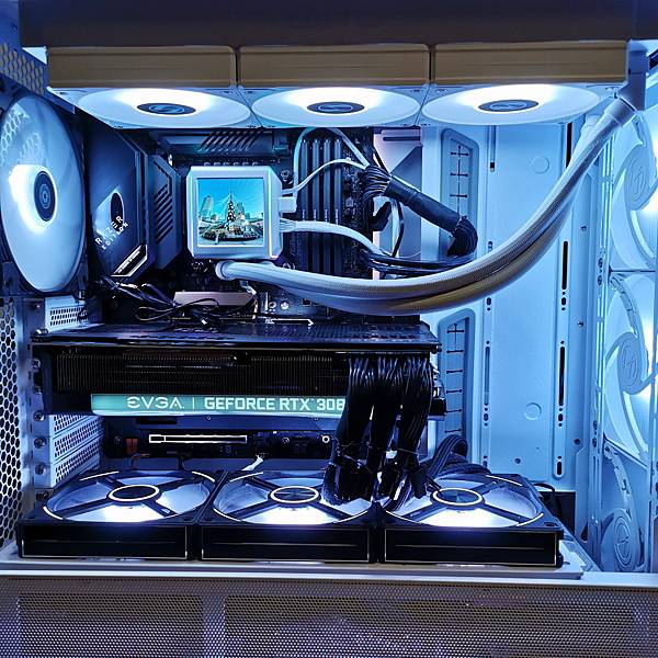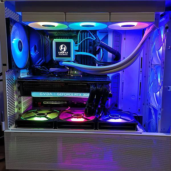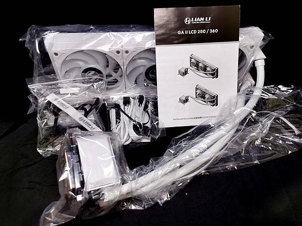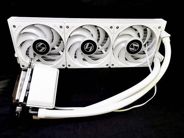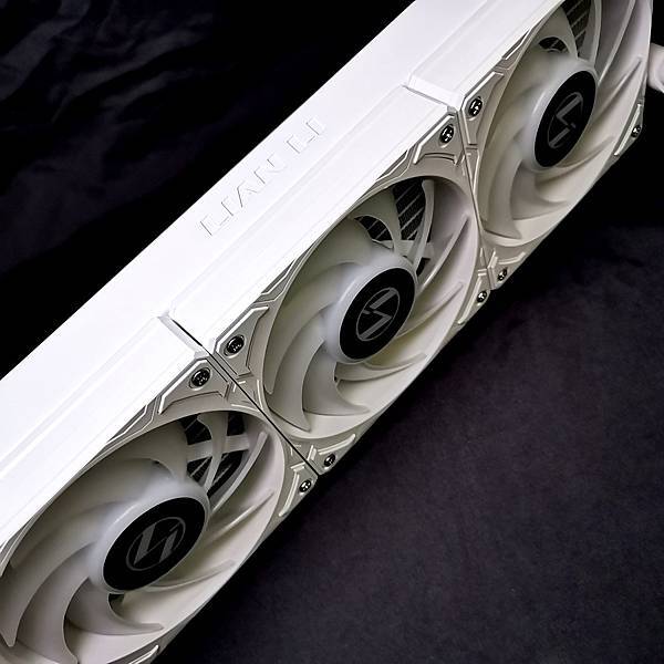 ▼ 幾近全白的 LIAN LI GALAHAD II LCD 360 ARGB 本體,出廠時 3顆 12公分風扇 皆已經安裝完成。