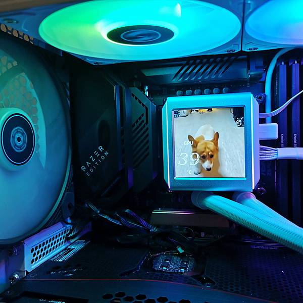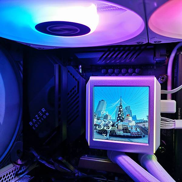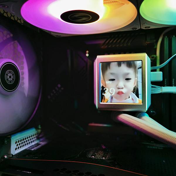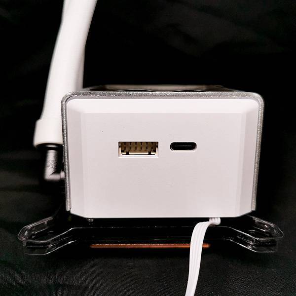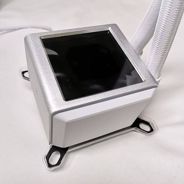 ▼ 水冷頭跟PUMP 一體化設計!銀色的鋁質框搭配兩側白色殼,看起來非常的有質感;使用 Asetek 第八代水冷泵,配備三相電機,轉速高達3600 RPM;最大的特色當然是 2.88吋 IPS液晶螢幕,解析度 480×480,水冷頭 外殼兩側 也有ARGB燈效。