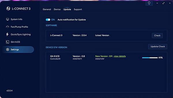 ▼ L-Connect 3軟體 安裝好一打開,立馬就偵測到有更新。
