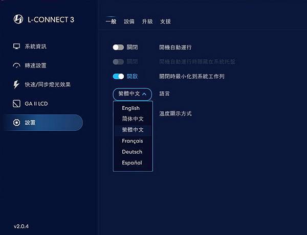 ▼ L-Connect 3 非常貼心的有 多國語言 可以設定
