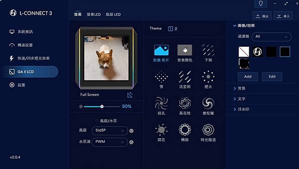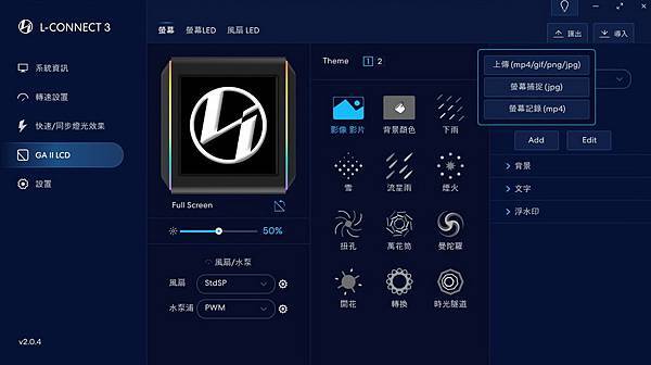 ▼ L-Connect 3 軟體介面的 GA II LCD,右邊可以看到 三種新增方式 - 上傳、螢幕捕捉、螢幕記錄。