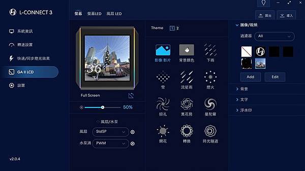 此次開箱 LIAN LI GALAHAD II LCD 360 ARGB 一體式水冷,最花時間的地方竟然不是在安裝,而且在設定把玩 2.88吋 液晶螢幕,因為其呈現的效果實在是太吸睛了,L-Connect 3 軟體的強大,讓使用者在 錄製及截取影像 超級方便,所見即所得的軟體介面 再加上螢幕有足夠的 解析度及亮度,也不用擔心呈現出來的效果有所差距;現在開機就能看到 2.88吋 螢幕 影片播放,心情真的非常愉快及療癒,