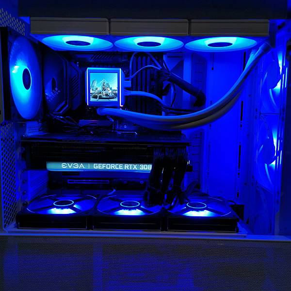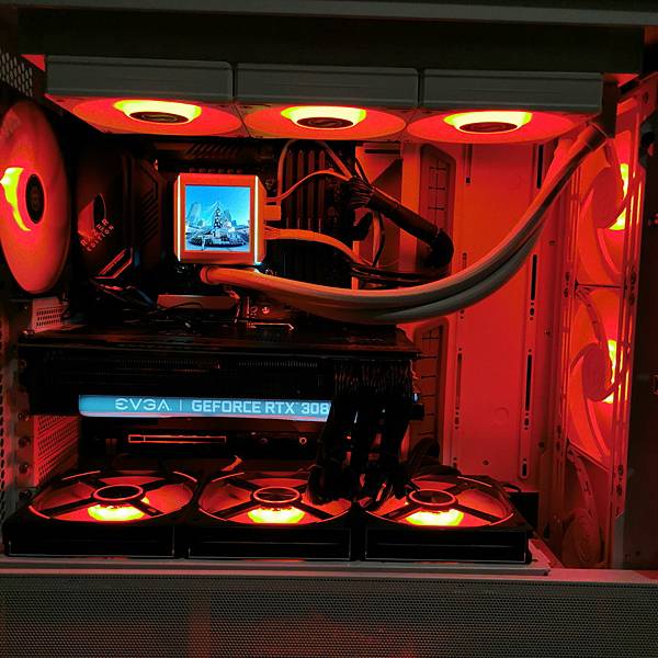 LIAN LI GALAHAD II LCD 360 ARGB 一體式水冷 在安裝方面超簡化,出廠時預裝好的 3顆 12公分 風扇,加上預塗好的 散熱膏,安裝時只要鎖好散熱排及水冷頭的固定螺絲就好了;精緻小巧的水冷頭,除了完全不會卡到零組件,鎖螺絲也不用左閃右躲還怕鎖不緊;45度 管道連接器 對於管路的調整真是大有助益,以往在裝一體式水冷時,為了喬一個好的安裝角度總在那邊左轉右拐有夠累;簡化的線材不僅安裝快速,幾乎是根本不用整線了,整套設備除了 SATA電源,連接主機板的就兩條線就搞定了。