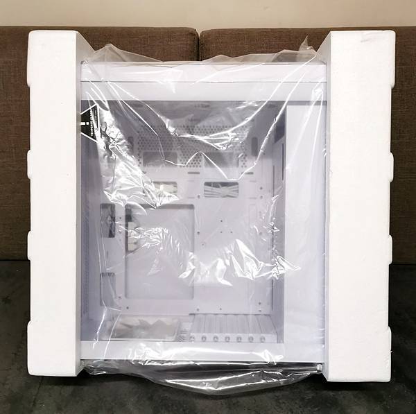 ▼ 純白的機殼有用塑料袋包裝,兩側還有保麗龍防震。