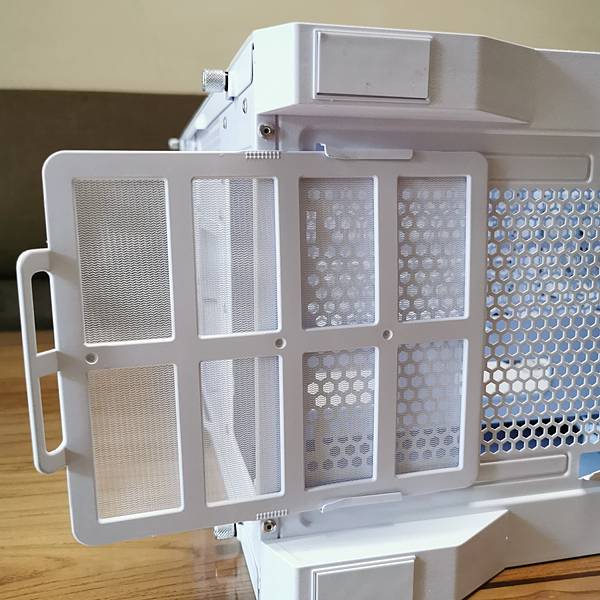 ▼ 取下前面板以後,先看到的是 磁吸式防塵檔板,同樣也是輕輕一拉就可取下來。