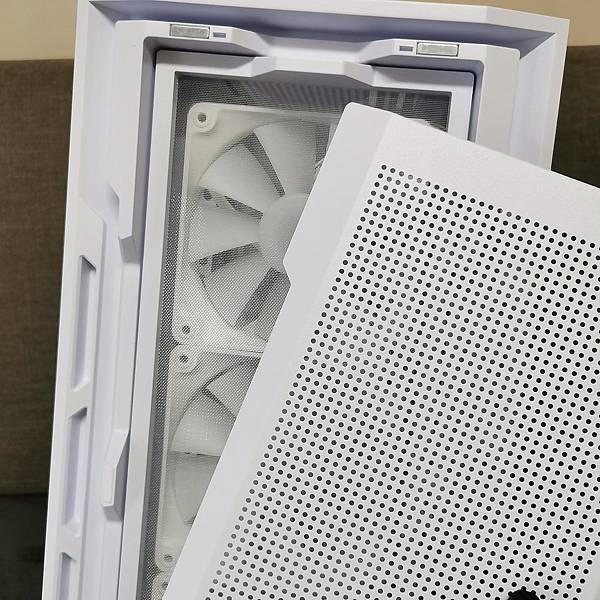 ▼ 另一邊的側板也有散熱孔,散熱孔上面也有 磁吸式濾網,這樣側邊裝了風扇,也不擔心過多灰塵進入機殼內部。