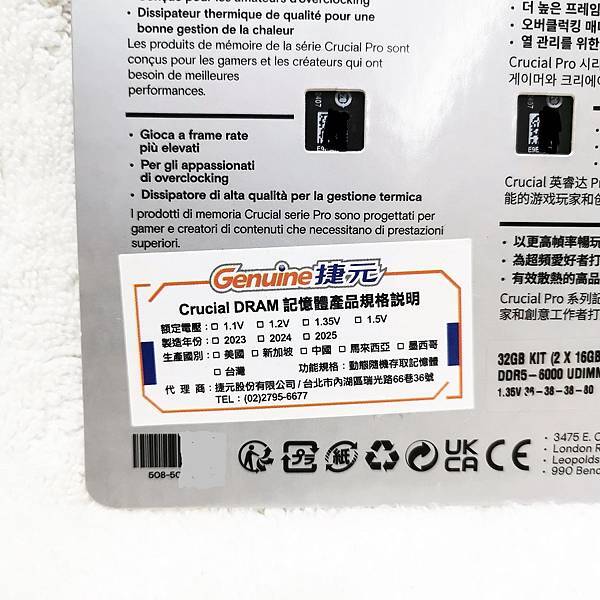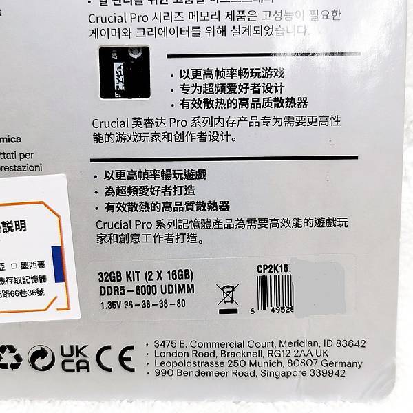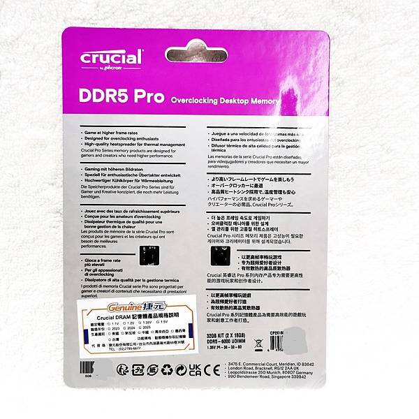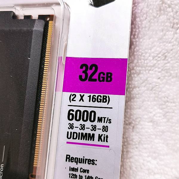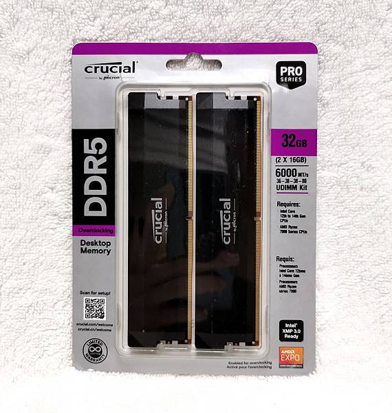 美光 Micron Crucial PRO DDR5 6000 超頻版記憶體,包裝採一貫的 16GB x 2。