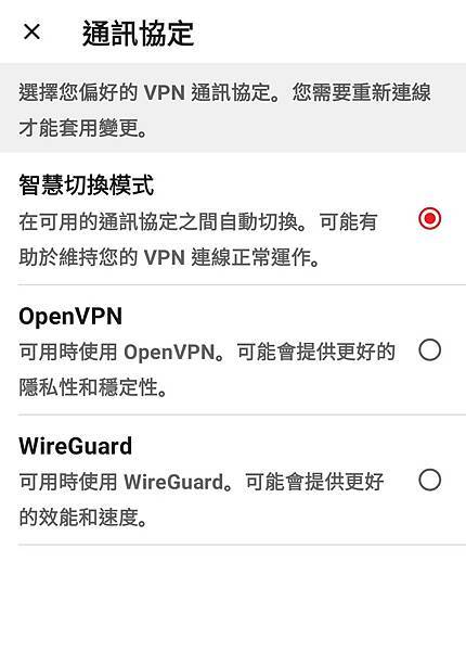 ▼ 通訊協定 有三個模式可以選,預設是 智慧切換模式。