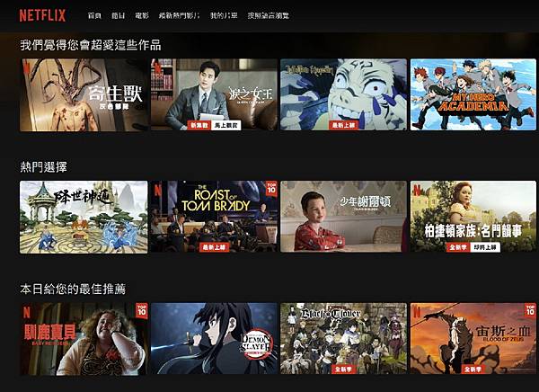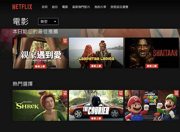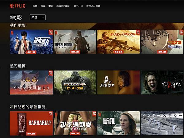 ▼ 再打開一次 Netflix平台 切換 首頁及電影,就會看到 影片選單 立馬產生大大不同。