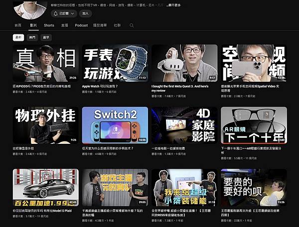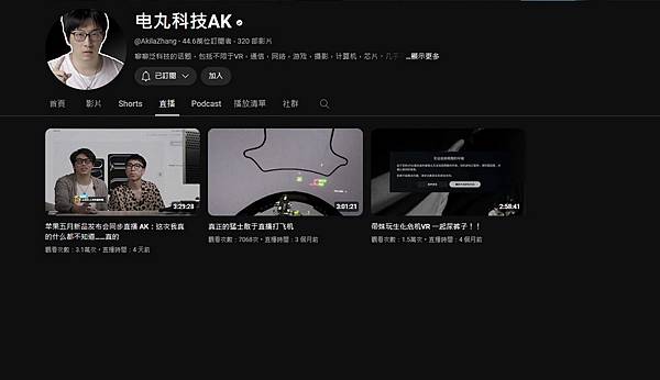 下面可以看到在它的頻道中 首頁、影片、直播,顯示出來可以觀看的影片僅有這樣。