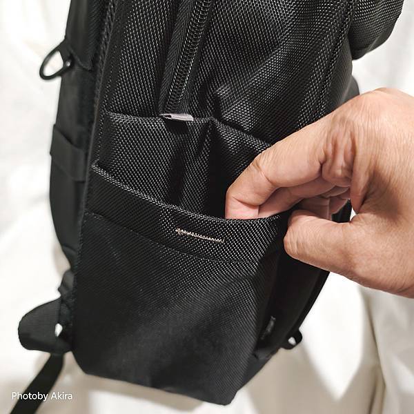 ▼ 側邊單邊開放式口袋,可拿來放水瓶或雨傘。