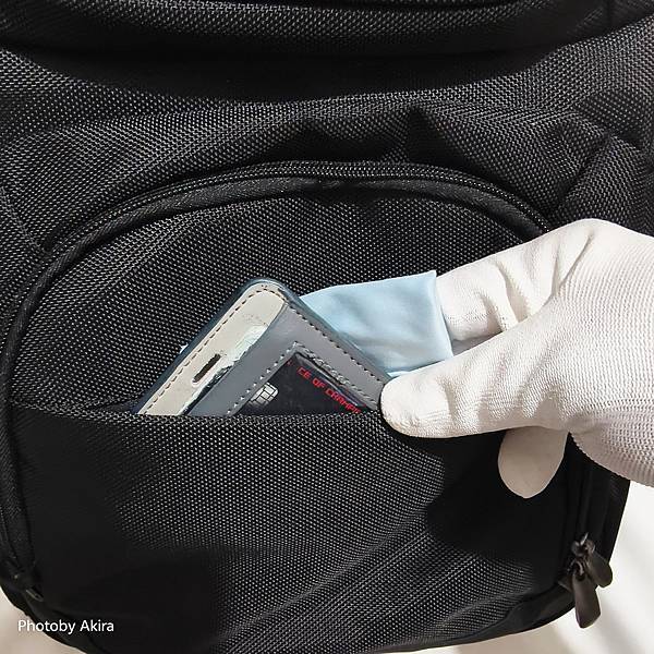 ▼ 前下方的拉鍊口袋 - 前方小口袋 筆者拿來放容易拿取的悠遊卡及拭鏡布。