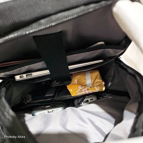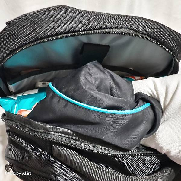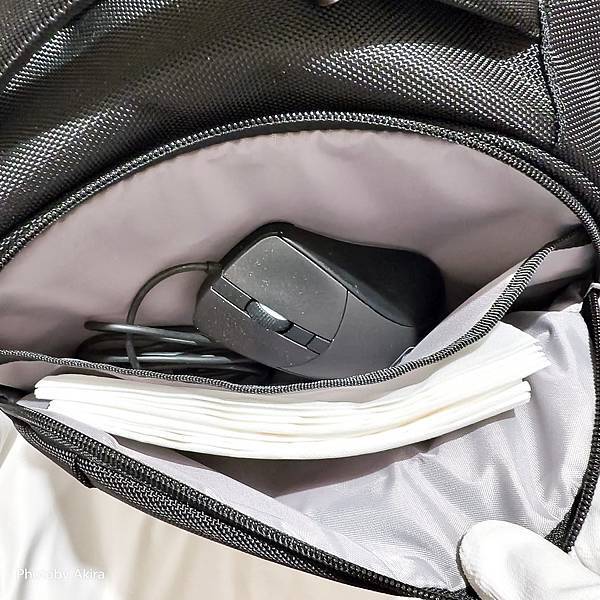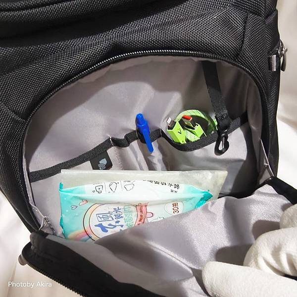 ▼ 前上方拉鍊口袋 - 筆者拿來放衛生紙,另外放了怕被擠壓的電腦滑鼠。
