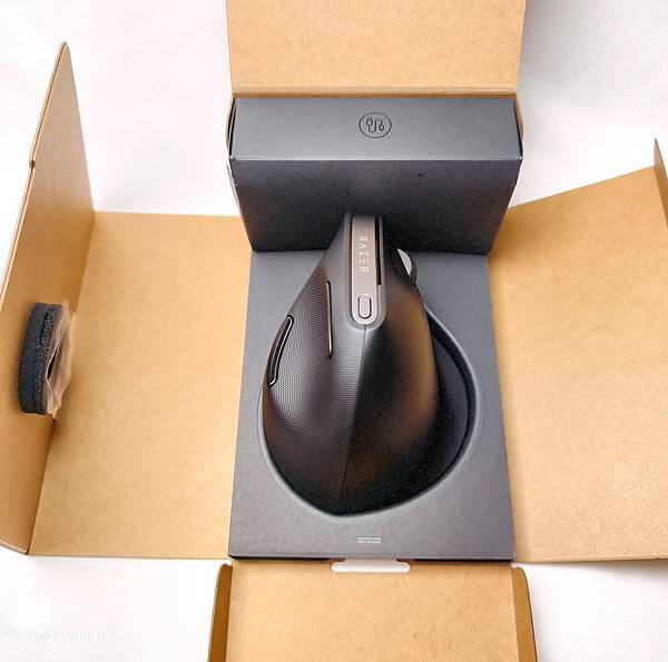 左邊可看到有海綿幫助固定 Razer Pro Click V2 Vertical Edition