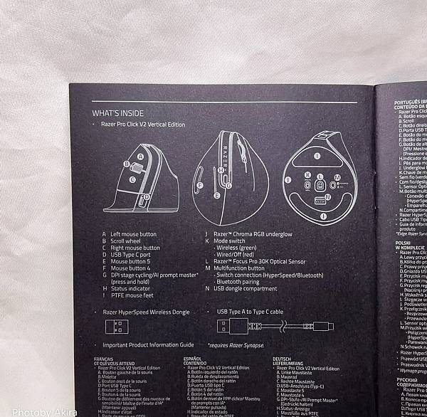 ▼ 多國語言說明書,詳細圖解滑鼠各處。