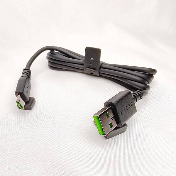 ▼ USB A 轉 Type C 連接線 兩邊都有防塵保護套,接頭處則是雷蛇標配的綠色,不過這次的線材已經不是常見的編織線。