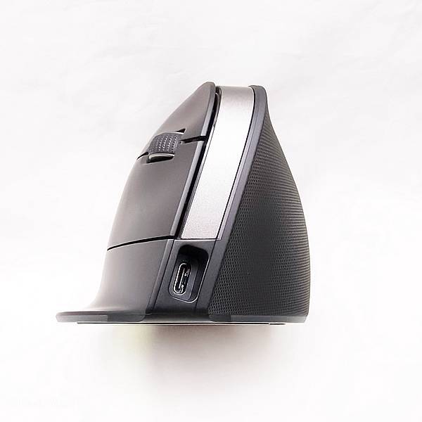 ▼ Razer Pro Click V2 Vertical Edition 正面可以明顯的看出 71.7°傾斜角度,下方為 USB Type C 連接埠。