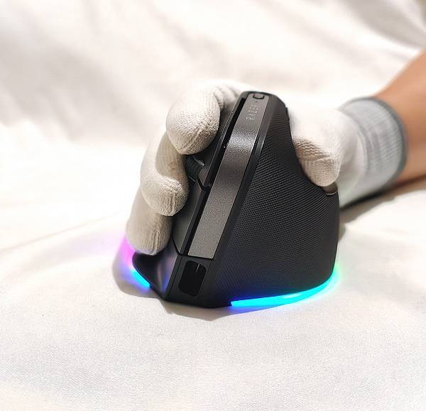 ▼ 右側使用類似雷蛇電競滑鼠皮革塗層,除了滑鼠左右鍵跟滾輪,下方底部特別做出延伸來做為掌托,讓手掌更放鬆並減少摩擦。
