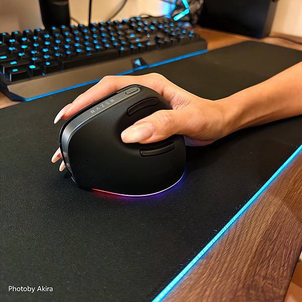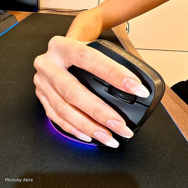 ▼ 對於有做美甲的美女,反而很適合使用 Razer Pro Click V2 Vertical Edition,一般滑鼠如果美甲太長,尤其是姆指的美甲前後移動容易卡住,現在則是上下移動完全不受影響。
