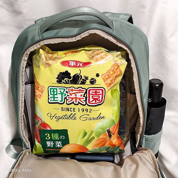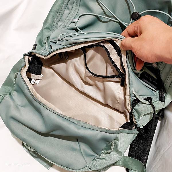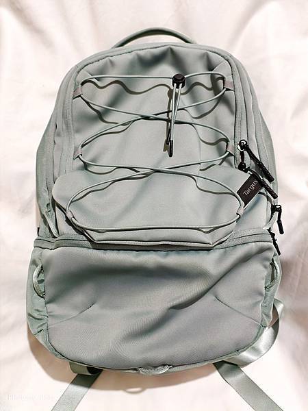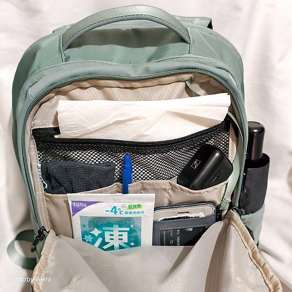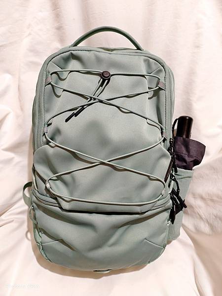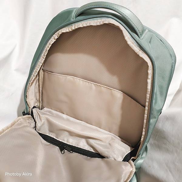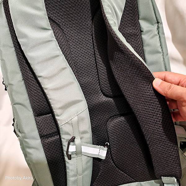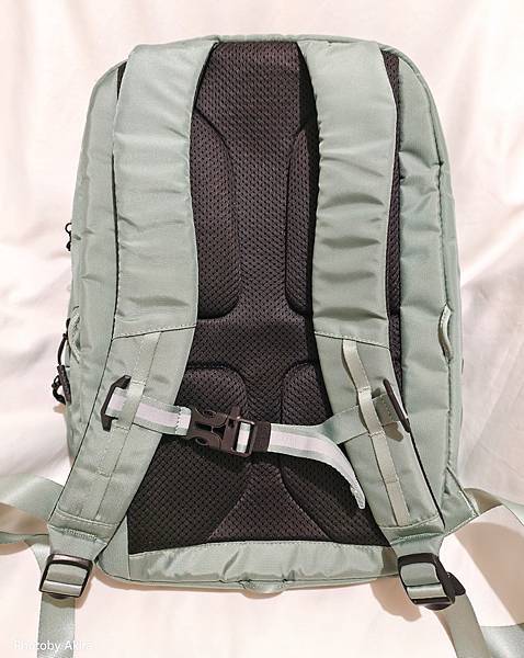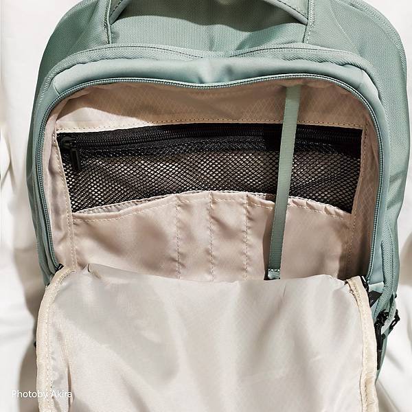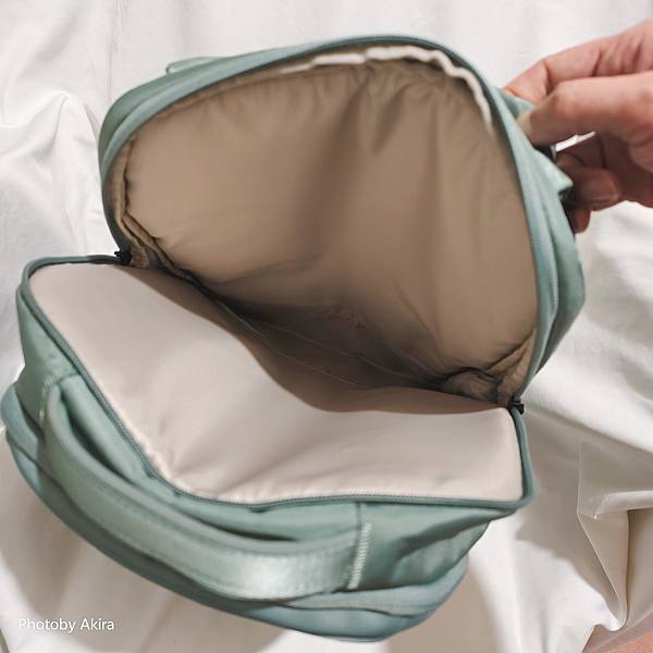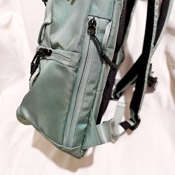 後背包整體採用淺綠亮面色,同樣在燈光及角度不同下,顏色會有些微的變化。