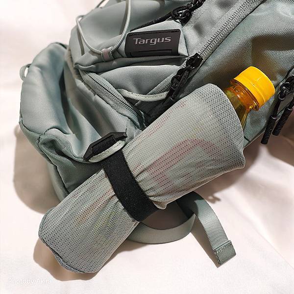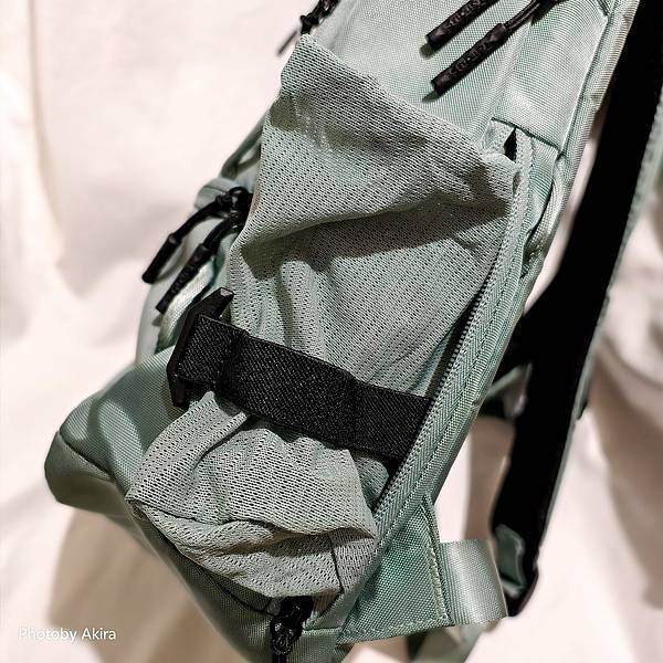 右側的邊縫處是隱藏式的網袋收納區,拉開拉鏈可以取出網袋,可以拿來放置雨傘、飲料瓶,不使用時將網袋收起來,可以讓整體更加美觀。
