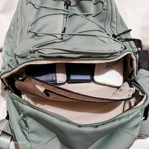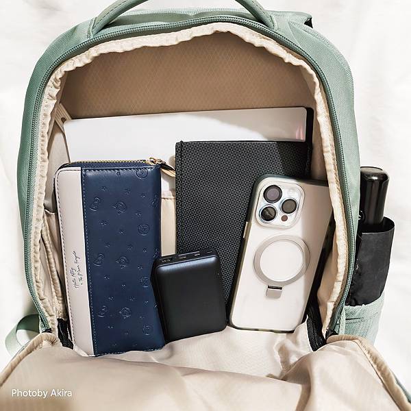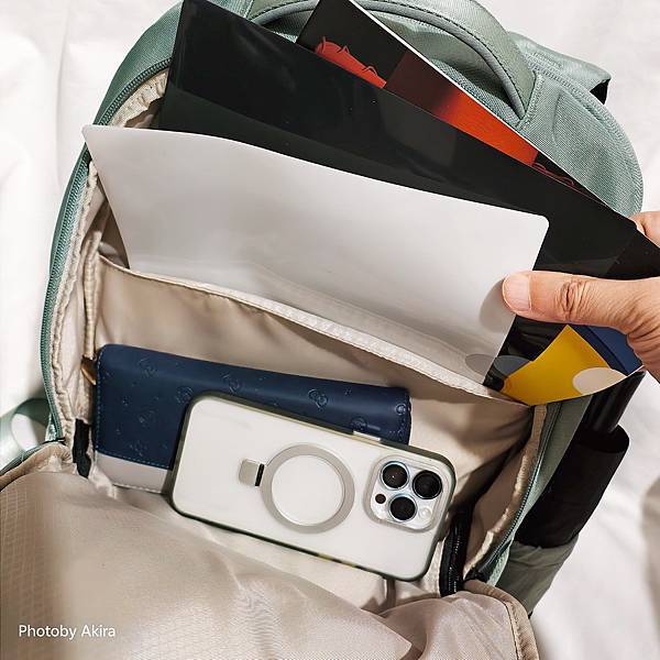第二層 放了 皮夾、行動電源、手機,後面夾層 則放了資料夾。