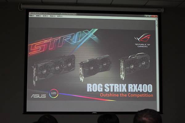 ▼ 此活動的協辦廠商華碩,現場所有體驗主機的顯示卡,皆是由華碩來提供,立牌上也可看到華碩的 RX400系列 特色。
