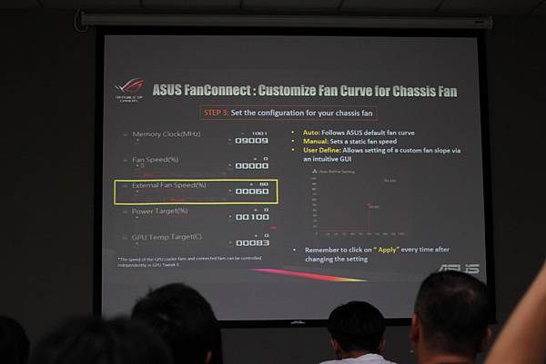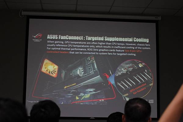 ▼ 華碩的散熱新技術 FanConnect,因為現在的CPU溫度都很低,所以讓顯示卡接上系統風扇,以達到更有效的散熱效果,顯示卡上面也設了2組系統風扇接頭,不用擔心主機板上接口不足的問題。