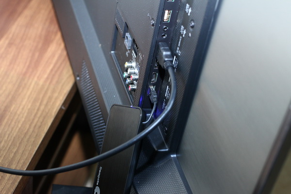 55SY700 擁有 HDMI*4、USB*3、色差/AV端子*1,除了較舊的 多媒體播放器,其它設備全都使用 HDMI介面。(為了看起來很厲害,故意把USB插滿。)