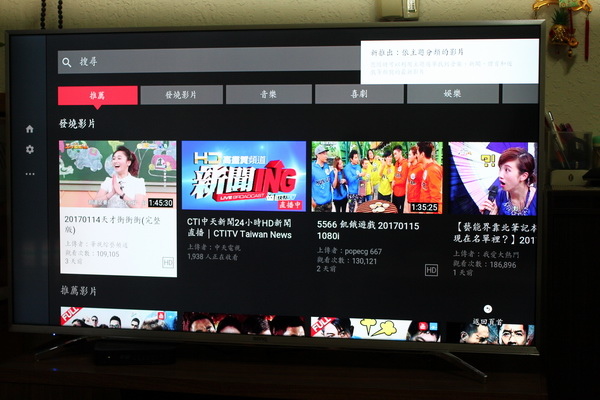 遙控器上面有 YouTube快捷鍵,而在 YouTube首頁 就有很多影片可以直接觀看。