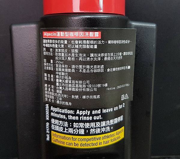 要讓洗髮露在頭上停留2分鐘後,咖啡因的成分深入頭皮之中,再開始沖洗;Alpecin運動型咖啡因洗髮露 算是非常好沖洗,不會有滑膩感。