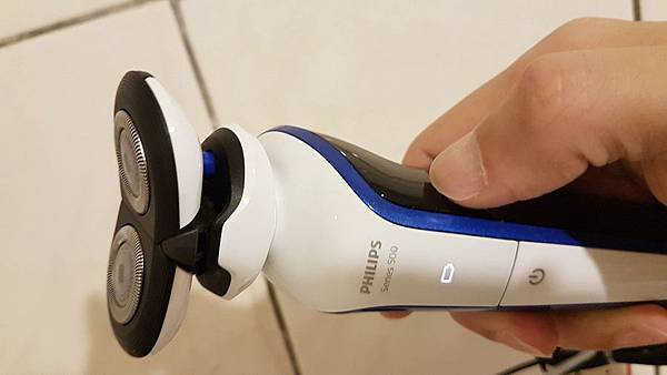 清洗非常簡單,先將刀頭朝下,用溫水沖洗,然後洗到一半在打開電源幾秒鐘,之後打開刀頭組去沖幾下就乾淨了,洗完再將水甩乾就好。